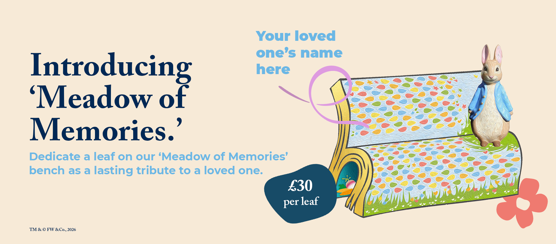 For a donation of £30 to @stoswaldsuk, we will add the name of your loved to one of the hand-painted leaves adorning the bench, each a gentle symbol of remembrance, watched over by @officialpeterrabbit™ himself. 🐰