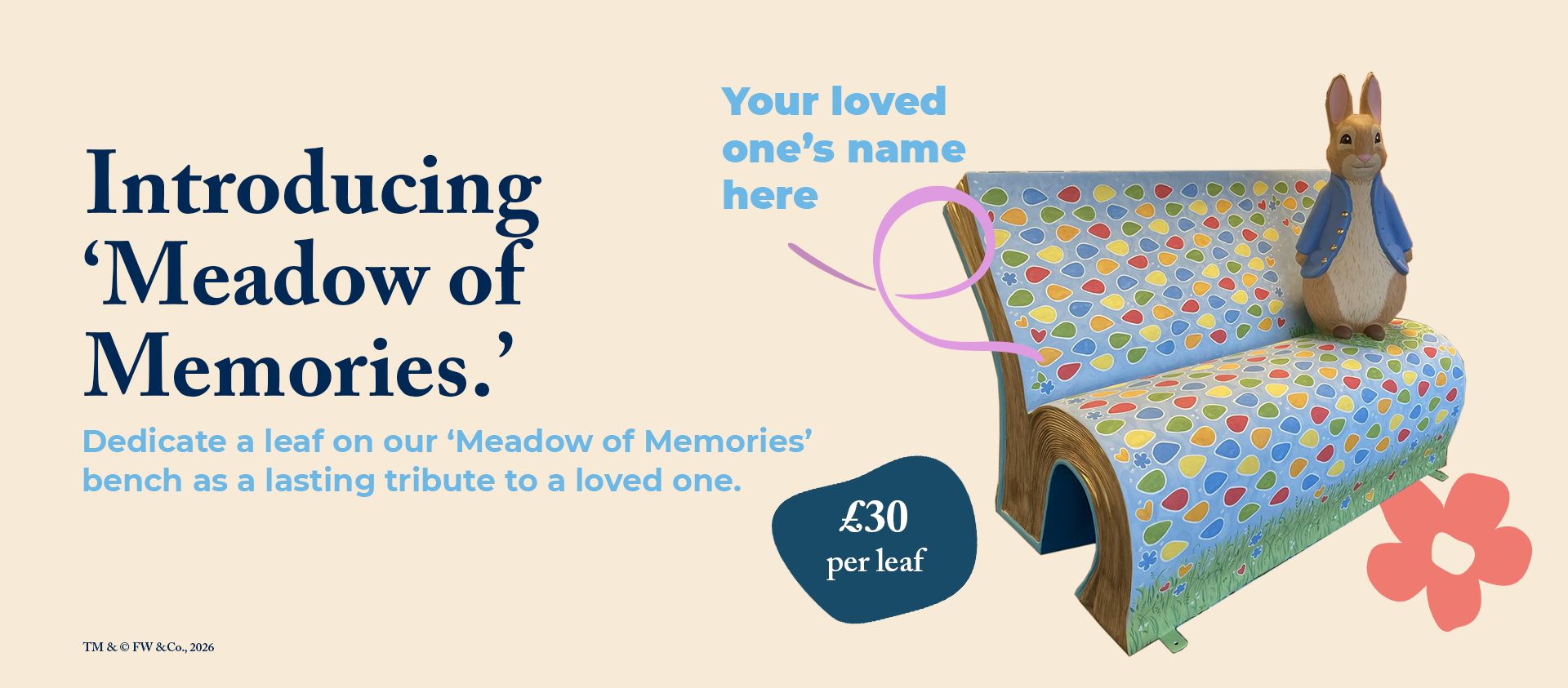 Your dedication will ensure their name becomes part of a beautiful sculpture featured in this summer’s @officialpeterrabbit ™: Tales on the Tyne art trail. The bench will be displayed for nine weeks at @newcastlecathedral , where you’re welcome to visit it and spend a quiet moment of remembrance. Afterwards, it will return to a permanent home in the gardens of St Oswald’s Hospice.