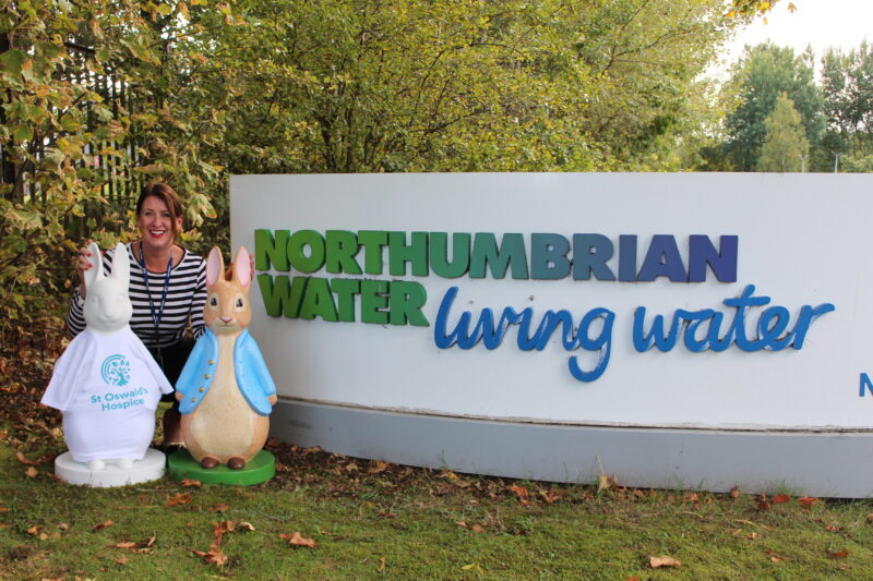 To mark the beginning of the partnership, Sonia Graham, Fundraising Manager at St Oswald’s Hospice, visited Northumbrian Water’s Durham headquarters with two of the little Peter Rabbit sculptures, which schools and community groups will decorate. Here she introduced the Peter Rabbits to Jennie Collingwood, Head of Corporate Affairs at Northumbrian Water.